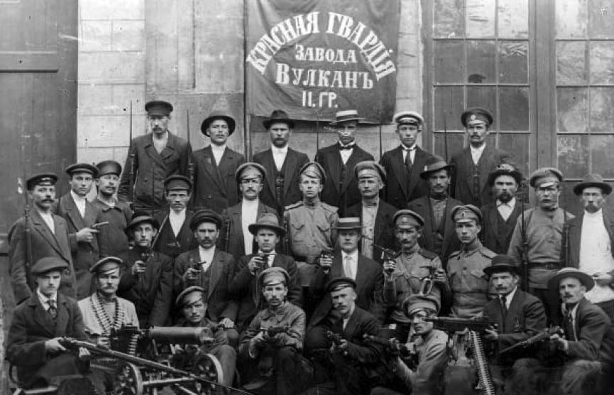从这两张老照片不难看出,赤卫队人员组成都很复杂,不但有工人、市民,还有沙俄军队的军官、士兵和水兵,甚至还有显然未成年的少年,所持武器也五花八门。