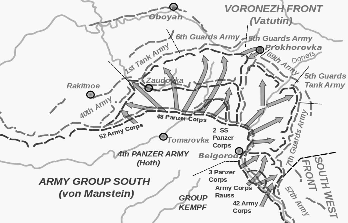 此役双方损失都不小,但损失数字各说不一,相差颇大,可以参考的是各方有关报告。南翼德军由瓦尔特·霍恩莱将军(Walter Hörnlein,1893—1961)指挥的“大德意志坦克掷弹兵师”进攻开始时有118辆坦克,经过5天作战还能使用的就只剩下3辆“虎式”、6辆“豹式”以及11辆中型坦克。冠以“大德意志”头衔的部队在德军中高人一等,兵员和武器配备都享有优先权,堡垒行动之前(1943年5月)这个师刚得到“虎式”坦克和装甲运兵车的补充,它和保罗·豪塞尔上将(Paul Hausser,1880—1972)指挥的武装党卫队第2坦克军是南翼担负主攻任务的主力,但由于到7月10日只剩下20辆还能作战的坦克,它未能参加7月12日开始的普罗霍罗夫卡战斗。