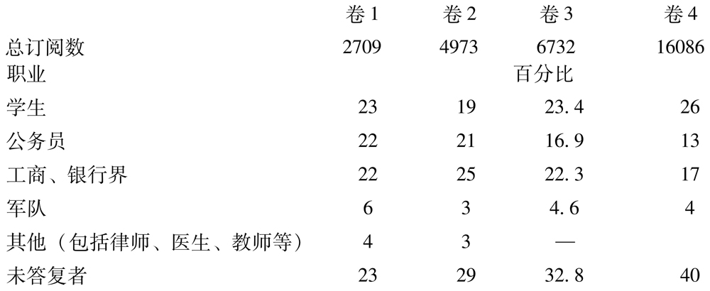《观察》的发行纪录可从编辑们每一期的报告中看出来。下文有关《观察》订阅者的数据源于每期刊物里的调查问卷,都是从上述报告中摘选下来的。但没有关于整个发行量的数据。据报道,订阅数在总发行量的15%—20%之间摆动。