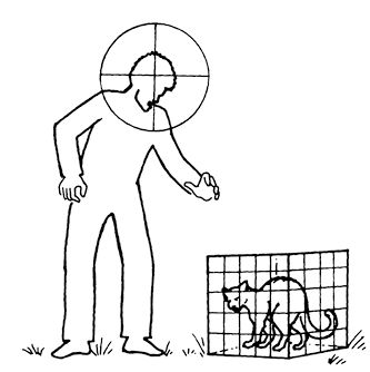 如果你不想对动物太过残忍的话,那你最好还是别采用这种战术为好。该战术主要方法就是将一只动物关进笼子里,然后你们的团队埋伏在笼子的射程范围之内。一旦有僵尸试图前去捕杀笼子里的动物,你就可以轻而易举地消灭它们了。当然了,要使该战术行之有效,你还得做些功课。首先,你得保证笼子里的动物是活着的,并且足够闹腾,这样才能引来僵尸的注意力;第二,笼子还得非常坚固,以免僵尸不会直接将其推开;第三,团队成员应该藏身在那些不会引来僵尸的地方;第四,还得保证队员们不会误伤甚至杀死该动物,你要知道,要是笼子里只有一只安静的死物,那这个战术可就行不通了;第五,笼子周围应尽量少有或没有遮盖物,这样才能确保引来僵尸,而队员所在地则应尽量隐蔽。避免在平原、苔原以及开阔的荒漠中使用该战术。