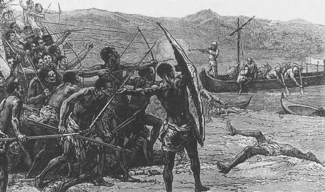 土著人挥着武器,向他们奔来