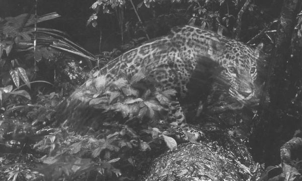 正在此时,通讯记者忽然从一块石头后面跑了出来,赫伯特以为他没有看到猛兽,正打算冲过去拦住他,吉丁·史佩莱这时镇定地向他做了个手势,叫他呆在那里不要乱动。他很有经验地走到了距离野兽只有10英尺的地方,把手里的枪抵在了肩窝上,站在那里纹丝不动。野兽正准备纵身跃起之际,记者忽然扣动扳机,一枪命中美洲豹的两眼之间,顿时将它击毙了。