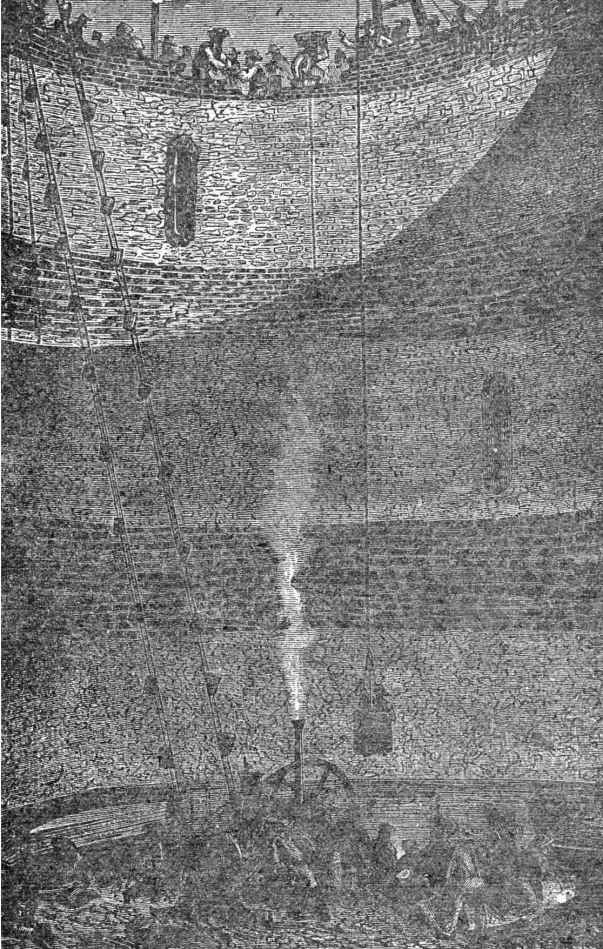 无论工程多么庞大,它也超越不了人类力量的极限,远远超越不了。他们遇到了无数难上加难的障碍,其中包括与大自然直接对抗,但都被他们征服了。就类似的工程而言,只提一下苏丹萨拉丁在开罗附近修建的一口井就足以说明问题,这口井叫“约瑟神父井”。当时还只是人工挖掘,没有机器,机器是能把工作效率提高100倍的。结果,井的深度达到了尼罗河水面以下300英尺。另外,还有一口600英尺深的井,是一个来自巴登的叫马各雷夫·约翰的人在科布伦茨挖的。可巴比康的井比萨拉丁的井深3倍,宽10倍。宽度一加大往下挖起来就更容易。没有一个工头或一个工人对工程的成功持怀疑态度。