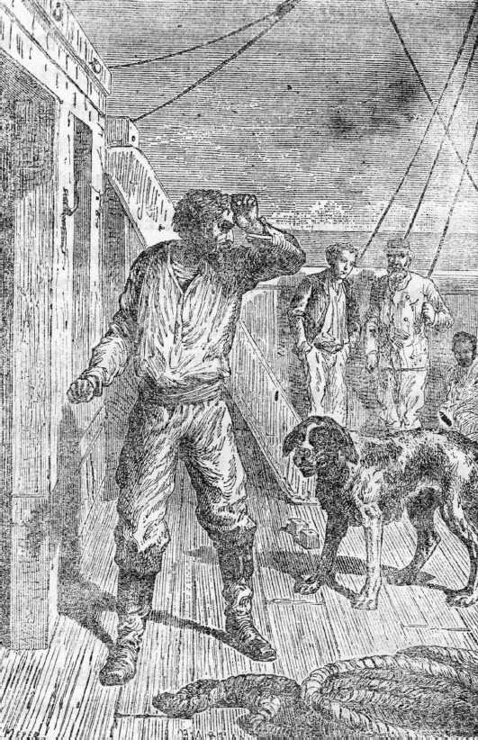 这时,内格罗离开他的厨房,出现在甲板上。最初,没有一个人注意到他的出现,也没有人注意到当他看见丁戈守护着那两个字母时,他投向大狗的古怪的目光。可是,当丁戈看到厨师的时候,它立刻露出极其愤怒的表情。