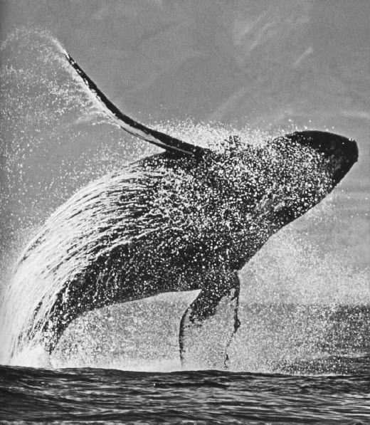 这时,座头鲸并没有像他们担心的那样冲向捕鲸艇,而且它也没有企图在逃走前挣断连接着鱼叉的渔线。相反,正如惯有的情形一样,母鲸带着幼鲸先是倾斜地潜入海水中,然后又猛地一跃,高高地窜出海面,随即劈开海水飞快地向远方游去。