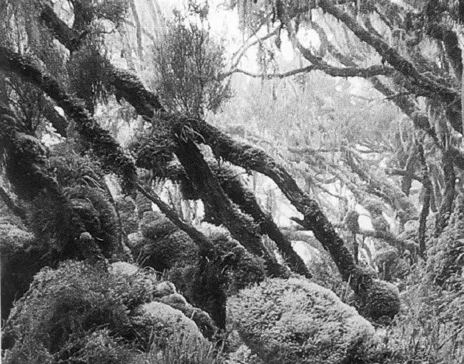 他们依然行走在莽莽的森林中。在这片保留着原始形态的土地上,炎热和潮湿使这里的植物高大茂盛,可以说,所有的植被都在尽情疯长,一片欣欣向荣的景象。这片辽阔的高原的纬度几乎与热带地区平行,而且在夏季几个月中,太阳高高地悬挂在头顶,阳光一直直射下来,因此地面储存了大量的热能,地表之下常年保持着潮湿状态。没有什么能比这片连绵不绝或者说无边无际的森林更壮观的了。
