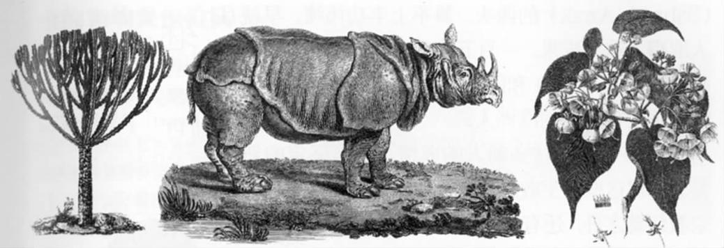 一些肥壮的牲畜散落在肥沃的大草原上,它们正半掩在高大的草丛中吃草。在树种繁多的森林中,鲜花散发着清新的芬芳,使整个森林犹如一个大花束。不过,在这个大花束中隐藏着狮子、豹、鬣狗、虎等猛兽,它们正在那里躲避白天将近的酷热。有时,旅行家们会看到一头大象摇动着矮树的树梢,然后听到它用巨大的象牙折断树干的声音。