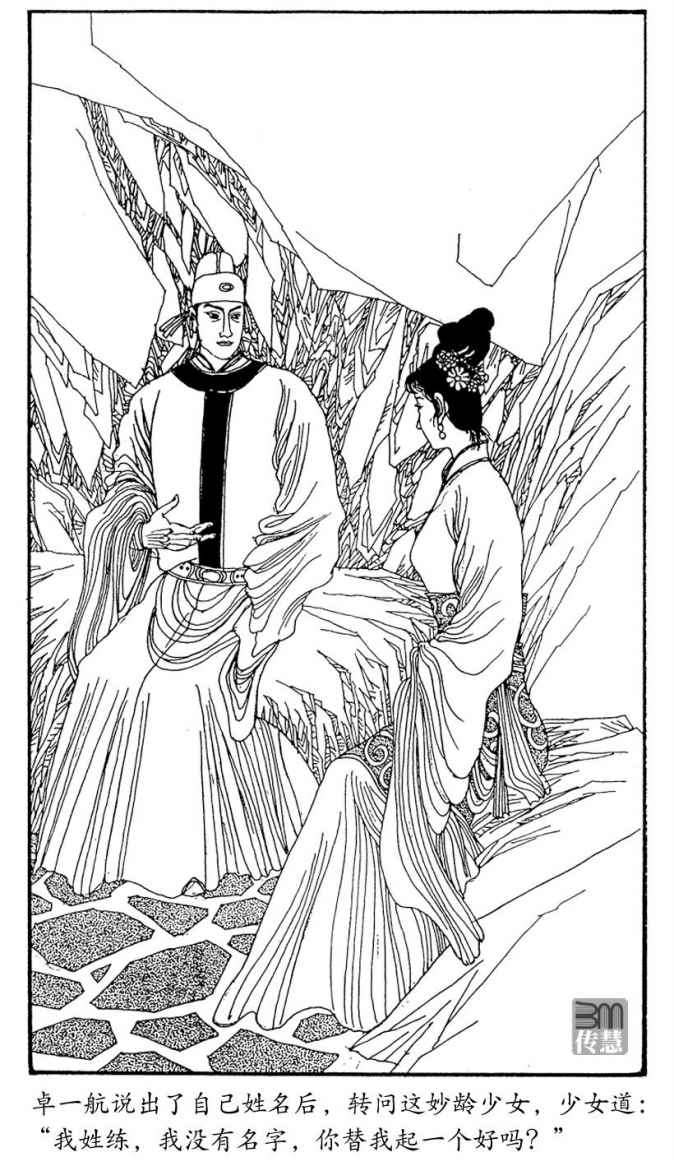 卓一航身形一闪,那少女身体歪斜,似欲倾跌,卓一航用手指一钩衣带,飘了起来,用衣带拦她腰肢,防她跌倒。那少女站稳脚步,尴尬说道:“地下湿,脚一滑,不是先生出手相扶,我几乎跌了一跤。”忽而又笑道:“说错了,不是出手,是用衣带扶我。”卓一航面红耳热,不敢出声。那少女忽道:“你也怕我吗?”卓一航奇怪这少女说话,怎么类似疯痴,继而一想,她无父无母,所以心里难受,怪不得她这样。因道:“我只觉小姐可怜。”少女截着话头,颤声问道:“可怜?”卓一航续道:“也很可佩。小姐孤单一人,活到现在,还敢独上华山烧香,若非有绝大勇气,也不能够。”那少女低垂粉颈,说道:“你说得真对,怎么你就像我的老朋友一般。喂,你叫什么名字?我还未请教你呢。”卓一航把姓名说了,转问少女,少女道:“我姓练,我没有名字,你替我起一个好吗?”外面雨声渐止,一阵风刮了进来,少女衣袂风飘,姿态美妙,卓一航突然想起“霓裳羽衣”的说话,冲口说道:“叫做霓裳,岂非甚好?”那少女忽然面色大变,喝道:“你是何人,从实招来!”卓一航惊道:“我就是卓一航嘛,练小姐嫌这个名字不好,不要便是,何必发怒。”那少女双眸闪闪,眼光如利剪一般直盯着他,听他说后,静了下来。道:“我又发怪脾气了,你给我取的名字很好,我以后就叫练霓裳吧。”