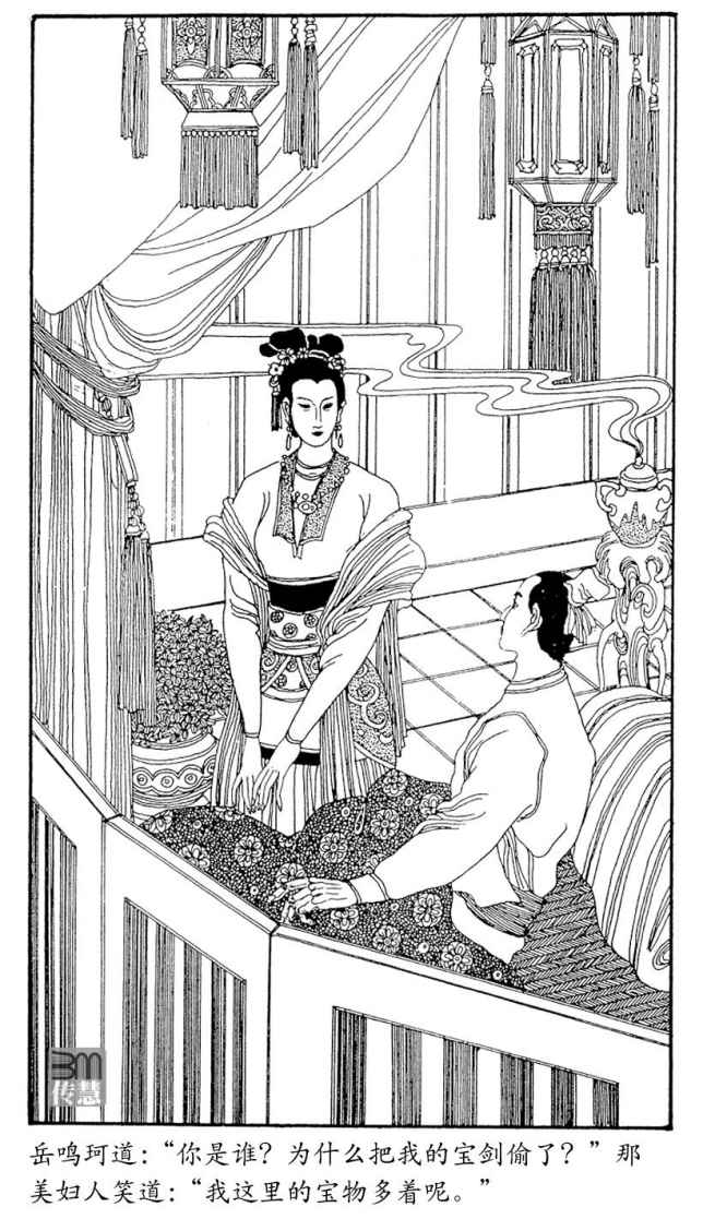 岳鸣珂试用了“沾衣十八跌”的功夫,试出那美妇人丝毫不懂武功,不觉说道:“啊,原来你不是妖邪!”美妇人怒道:“你才是妖邪!”忽又回嗔作笑,道:“你是进京考武的举子么?”岳鸣珂心念一动,忽道:“你说你有许多宝剑,请借一把来瞧瞧。”美妇人稍现犹疑,随即笑道:“谅你也不敢杀我。我就让你开开眼界。”随手在墙上一按,打开一道暗门,乃是一个壁橱,里面悬有十来口剑,岳鸣珂一眼瞧去,并无自己的游龙剑在内。只听得那美妇人道:“这里的剑,随便哪把都要比你的好,你服了吧?”岳鸣珂突然一跃而起,在壁橱里抽出一把剑来,只见寒光闪闪,冷气森森,美妇人道:“如何?是不是比你的剑好?快些挂回去吧!”