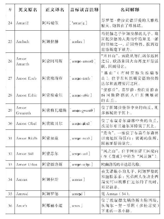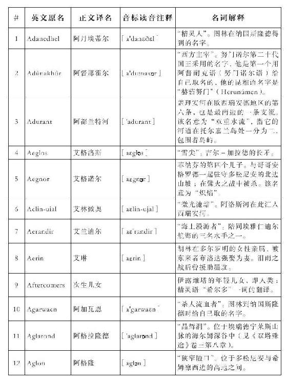 发音参考了大卫·萨洛(David Salo)编写的《辛达语入门》(A Gateway to Sindarin)一书,和露丝·S.诺埃尔(Ruth S.Noel)编写的《托尔金中洲世界的诸语言》(The Languages of Tolkien’s Middle-earth)一书。音标参照其中的说明用国际音标进行标注,和我们许多人学习英语常用的音标习惯略有不同。