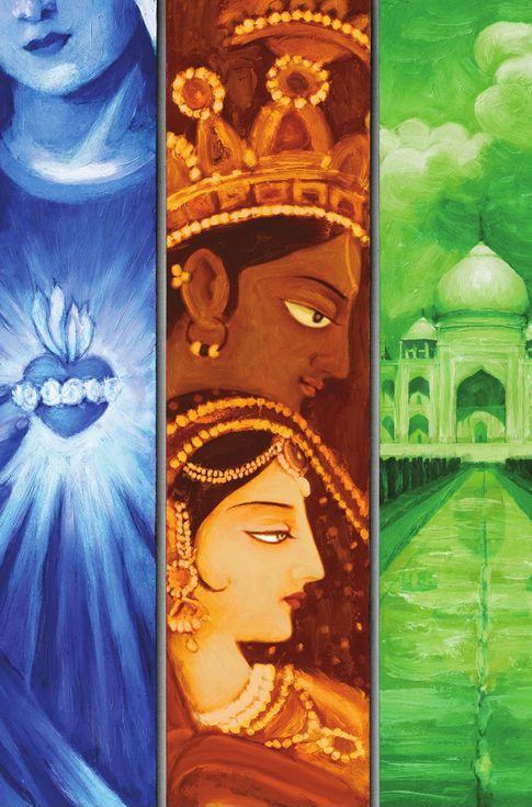在起居室里,沙发旁边的桌上,有一幅镶了框的瓜达卢佩圣母马利亚的小画像,鲜花从她敞开的斗篷里撒落下来。画像旁边是一张镶了框的覆盖着黑布的天房的照片,那是伊斯兰教最神圣的圣所,周围环绕着一千层忠诚的教徒。电视机上有一尊舞王形象的湿婆〔14〕铜雕像,他是宇宙的舞蹈之王,控制着宇宙的运动和时间的流动。他在无知这个恶魔的身上跳舞,四只胳膊以舞蹈姿势伸展着,一只脚踩在恶魔背上,另一只脚提在空中。当舞王把脚放下来时,他们说,时间就停止了。