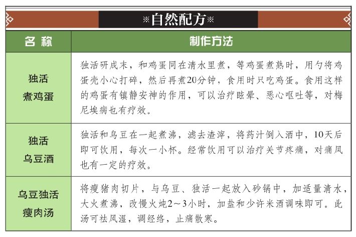 独活有散寒止痛的作用,可以治疗风湿引起的麻痹疼痛、腰背酸痛、头痛、牙痛等。