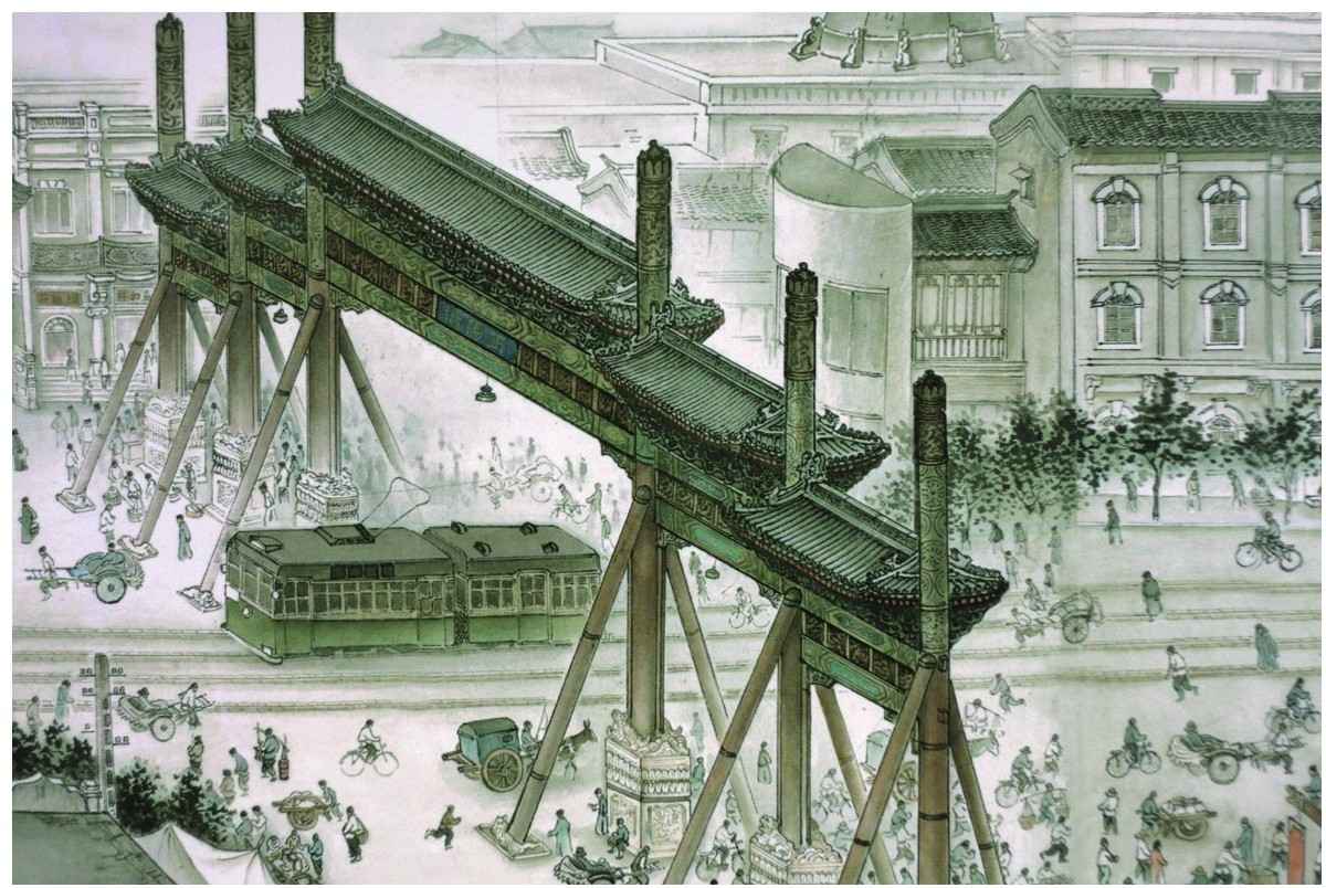 忽然,前面的人们都陆续跪倒了;远远地有两匹马并着跑过来。此后是拿着木棍、戈、刀、弓弩、旌旗的武人,走得满路黄尘滚滚。又来了一辆四匹马拉的大车,上面坐着一队人,有的打钟击鼓,有的嘴上吹着不知道叫什么名目的劳什子。此后又是车,里面的人都穿画衣,不是老头子,便是矮胖子,个个满脸油汗。接着又是一队拿刀枪剑戟的骑士。跪着的人们便都伏下去了。这时眉间尺正看见一辆黄盖的大车驰来,正中坐着一个画衣的胖子,花白胡子,小脑袋;腰间还依稀看见佩着和他背上一样的青剑。