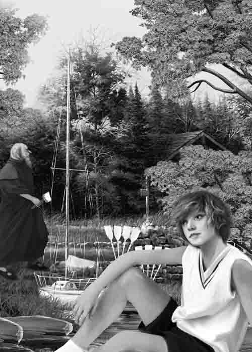 河岸斜坡上,正晾着一排刚漆过的长桨,铅白色闪闪发亮。科尔索老爹手提油漆桶,拿着大刷子,正在走开。他那张脸晒得黝黑,布满深深的皱纹,好似晚风吹过的河面……噢!这位科尔索老爹!他是我童年的撒旦、我的痛苦的迷恋、我的罪孽、我的悔恨。他运用他的游船,促使我犯下多少罪过!我逃学,卖掉课本。为了划一下午船,还有什么东西我不会卖掉呢?