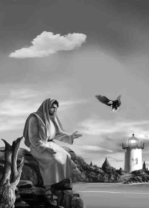 临近下午五点时,守塔人用喇叭筒喊我回去吃晚饭。于是,我沿着丛林中的一条小路,一直攀上海边陡峭的山崖;我慢悠悠地朝灯塔走去,每走一步,便回头望望这水天相连的辽阔的远方,我登得越高,这天际仿佛就越开阔。