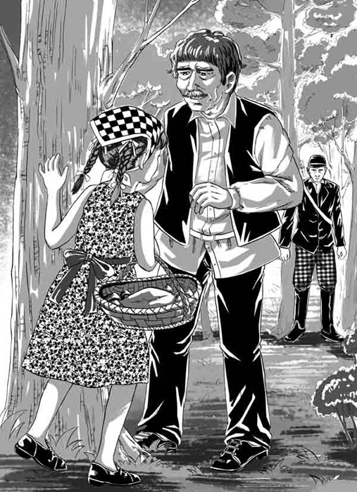 “是的,采蘑菇。”她羞怯地笑着回答说。