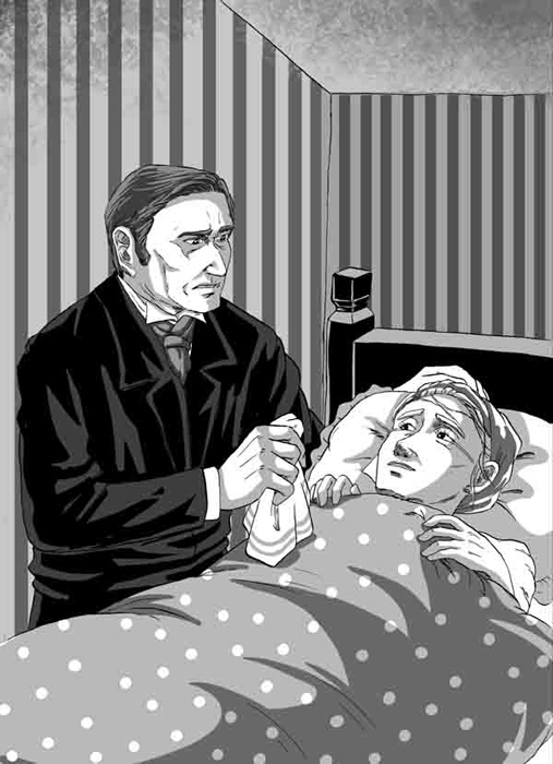 我连忙满足了她的要求,并且把手帕留给了她。起初她不肯要……她说:“我要这样的礼物做什么?”手帕是很普通的,但是又白又干净。后来她用瘦弱的手指头把手帕抓住,就再也不放开了。我们俩都在黑暗中,等我习惯了黑暗,就能清楚地看出她的面貌,甚至能看出透过她脸上的青铜色显露出来的微微的红晕,能够在这张脸上看出——至少我觉得是这样——过去美貌的痕迹。