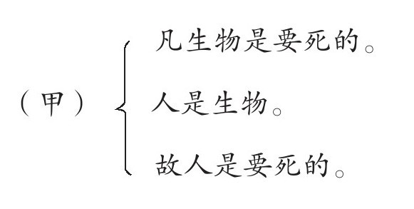 (甲)式仍是演绎法,不过所根据的大前提更普遍了。(乙)式是以个别的事物为根据,得到较普遍的判断,这方式和演绎法显然不同,叫作归纳法。