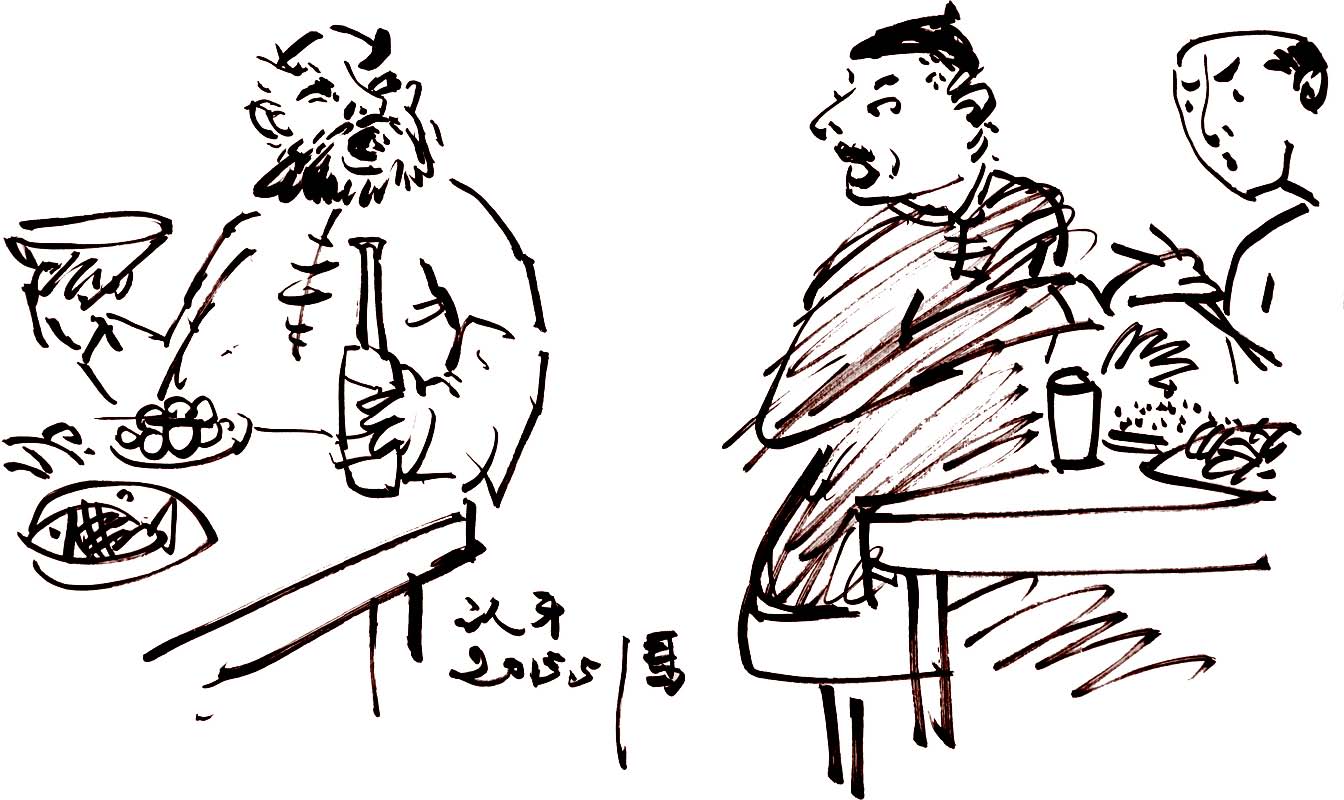 天冷了的一天,华大夫真的急急慌慌跑到巡捕房来。跑得太急,大褂都裂了。他说那抢首饰店的家伙正在开封道上的『一壶春』酒楼喝酒呢!巡捕闻知马上赶去,居然把这黑脸巨匪捉拿归案了。