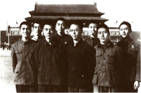 和同班同学合影自左至右:李惠敏、徐金波、郎放、赵振开、曹一凡、史康成、吴人侃、张潜