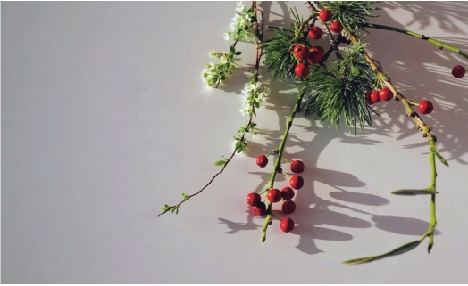 冬天里万物凋零的世界只有黑白灰时,那俏丽枝头的红色冬青果真是唯一点亮心情的色彩了。这种植物的果实,整个冬季都不会从树枝上掉下来。当鸟儿没有饲料、饥饿难忍时,冬青树的果实正好可以让它们维持生命,因此,冬青树的花语就是生命。用生命去守护生命,多美的自然法则。在这个节气里,傲寒的松木与红色的冬青果相映成辉,为冬天送上一份灵动。