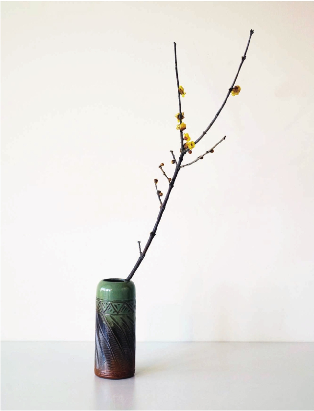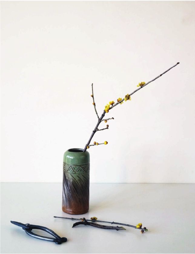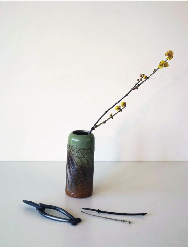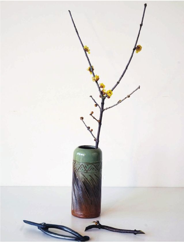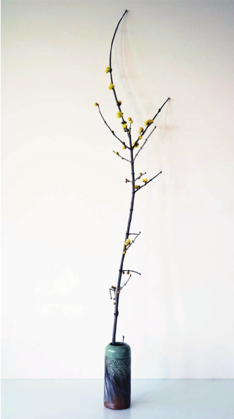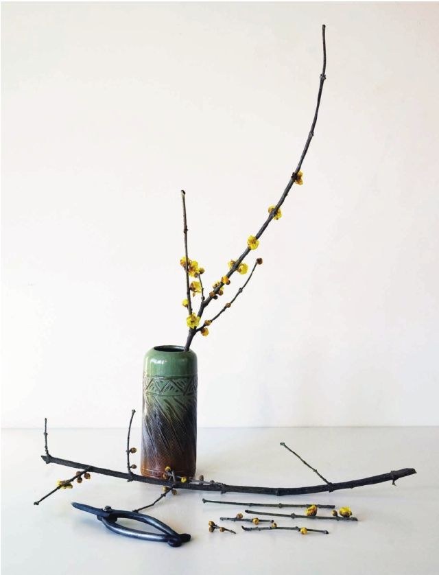 在北方人的眼里,蜡梅是稀罕之物,因为在花市里的蜡梅总来自遥远的南方,为了便于运输,腊梅花儿的造型总被砍得七零八落,早就失去了在自然中原有的姿态,没有飘逸的、遒劲的枝条,只有各种“Y”字形的枝杈,本节依然借用蜡梅这个主题来让大家继续练习关于枝条的取舍,因为在很多时候,家中案头只要一枝花就能体现出自己的心情和这个时节的一点乐趣。